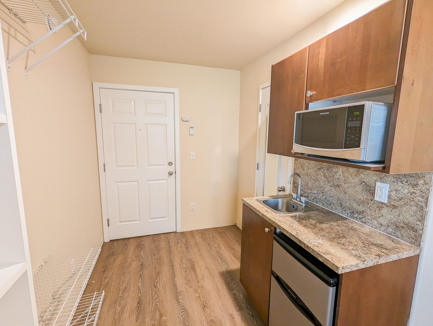 - Convenience center with microwave, mini-fridge, and sink