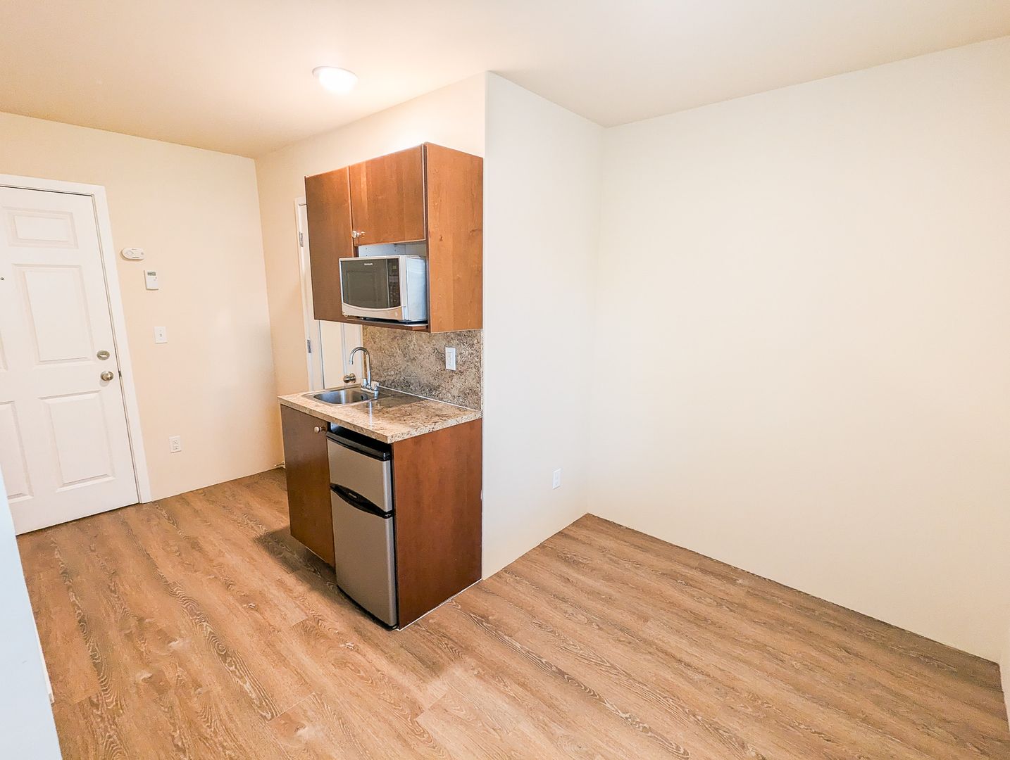 - Sleek wood-style flooring for a clean, contemporary look