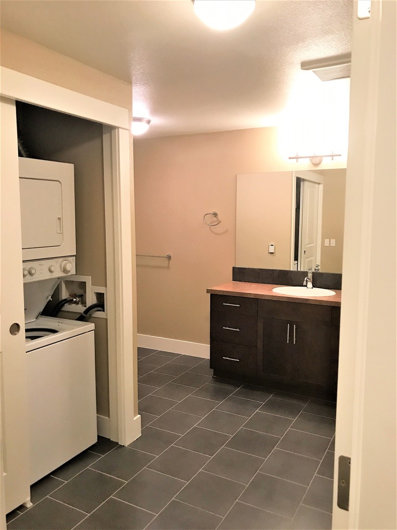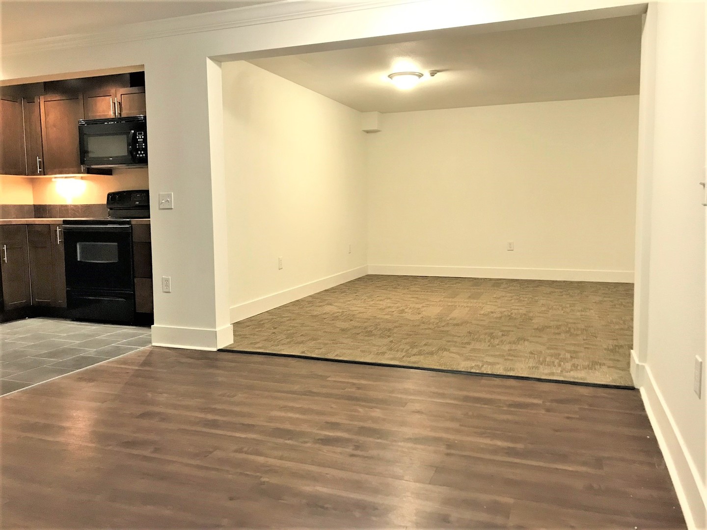 The Voss Apartments has a rare spacious studio available that measures at 650 sq feet, just smaller than our one bedroom with dens! Have a king ice bed, it will fit with room to spare in the extra large sleeping alcove. This spacious apartment features beautiful cabinets, a mix of tile and carpeted flooring and black appliances! Don’t miss out on the biggest bathroom in Ballard, which includes a full size closet and washer/dryer. The building also features a small gym on-site!