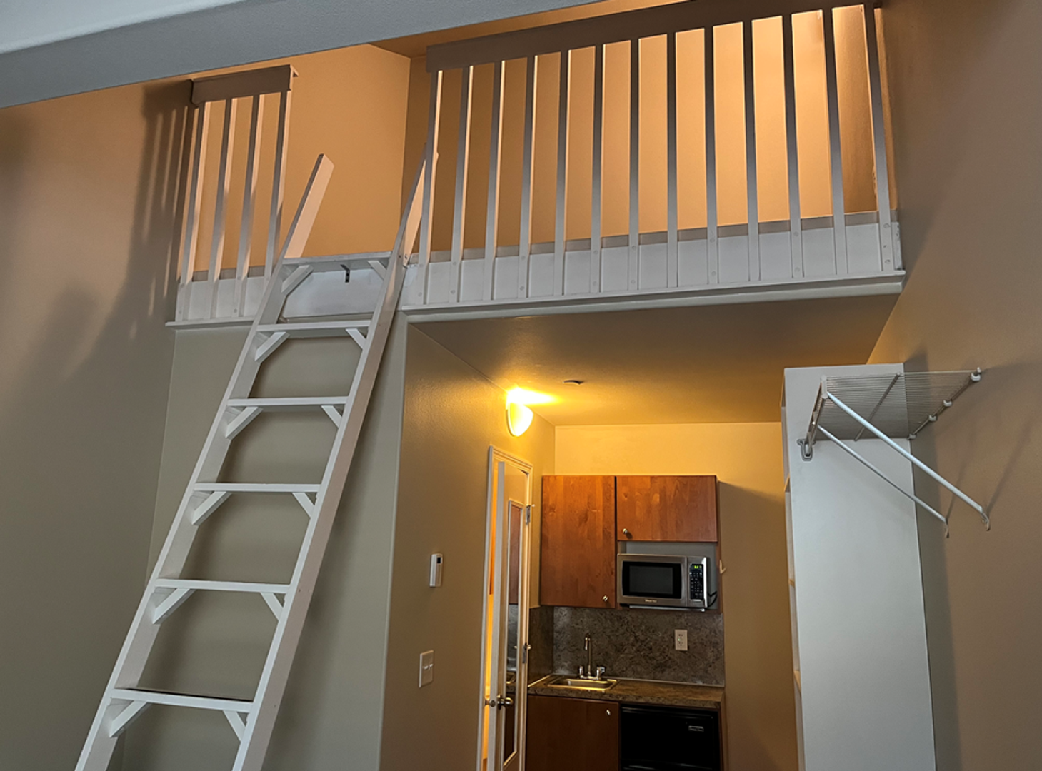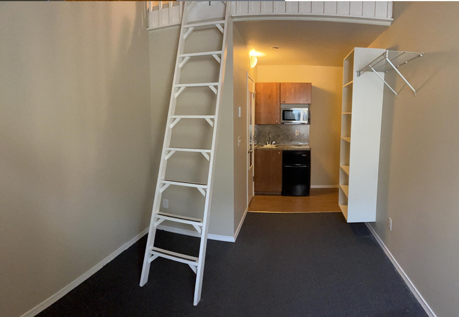 Apartment 6D is one of our limited-available lofted apartments. Our units offer a kitchenette and private bathroom, as well as a living space and secondary loft-area! Get creative with separation of space, our units offer an unbeatable opportunity to test your home decor skills. Right outside of your door is a common full-size kitchen, cleaned by our professional cleaning vendor Monday through Friday for your convenience. And, just a short walk away, access our common laundry areas.
